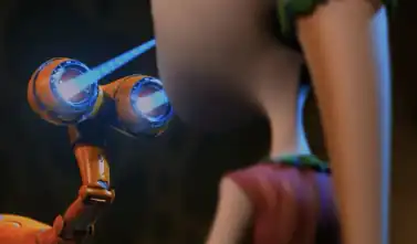 - The page picture is from Battle for Terra. Giddy (the robot) is giving Mala a direct to brain download of the English language so she can talk to downed pilot Jim Stanton, in exchange for her help in saving his life.
