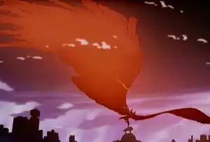 An enigmatic character, apparently the most powerful "space pirate" in the galaxy. His N.O. is great enough to steal entire solar systems. His physical appearance is that of a bird-like creature resembling a phoenix. He has a nose ring identical to the metal ring on Haruko's bracelet, which allows her to detect Atomsk's presence or the activation of N.O. in general. His power is initially channeled through Canti, augmenting him with strength and powers of superhuman feats, until his release in the final episode. Amarao mistakes Atomsk for Haruko's love interest, picturing him as a humanoid energy being, but is quickly proven wrong: Haruko has been searching for Atomsk in hopes of absorbing his infinite power for herself, but is unsuccessful at capturing him. Instead, Naota gains his powers for a short time and enrages Haruko into trying to kill him, but he quickly gives them up to confess his love to her. Atomsk escapes to the far reaches of the universe, and Haruko begins her hunt for him anew.