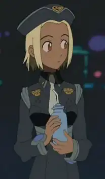 An agent from the Department of Interstellar Immigration, a The Men in Black-like agency. This agency, among other things, acts as a middle man for negotiations between the government and Medical Mechanica. Thus, Haruko is a big problem for them as she is bent on provoking an attack by disrupting communications.