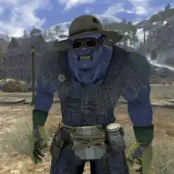 Boone is a former NCR First Recon Sniper who settled in Novac. His wife was recently killed, and he wants to hunt down those responsible for the events which lead to her death. He enlists the aid of the Courier and will tag along after the matter is settled; however, he is being haunted by other ghosts in his past. Boone is highly proficient with rifles, tough, and he's a surprisingly decent melee fighter too.