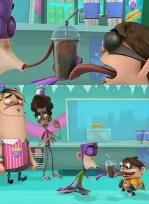 - In "Dollar Day", the Frosty Freezy Freeze machine splurts a drop of the drink in Fanboy's eye, to which he replies "Oh, heh heh... feeling playful today?".