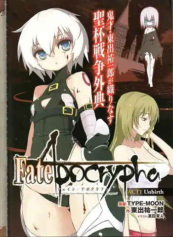 Fate/Apocrypha is a Light Novel by Yuuichiro Higashide set in the Fate/stay night universe. It was originally conceived as a joint-project MMORPG by Type-Moon, with the help of several other authors and artists like Gen Urobuchi, but has since been canceled. The concept has been revived as a Light Novel, now being published in the Type-Moon Ace magazine.