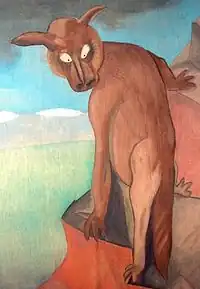 The most famous southwestern Critter, popular in Texas, New Mexico, and southern California. The Jackalope is a wild hare or jackrabbit with the antlers of a deer, reportedly very difficult to catch or even to spot (though U.S. President Ronald Reagan did claim to have caught one once—purely as a joke, we expect). Jackalopes are highly elusive and will run at the very sight of a human, but at night, they all gather in the desert and sing harmoniously with their strange, enchanting voices. Of course, that's only one interpretation; it's more uncommonly described as a vicious Killer Rabbit. To this day, the "stuffed Jackalope" is a fairly common sight in southwestern bars and taverns.