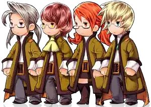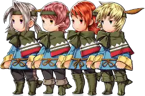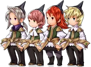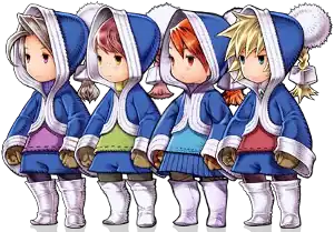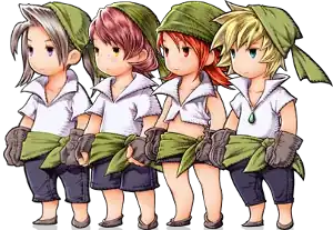 - Color Coded for Your Convenience: Not as prominent as some cases, but Luneth, Arc, Refia, and Ingus seem to favor the colors purple, kimidori (green/yellow - it's a separate colour in Japan), blue, and red, respectively.