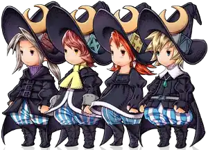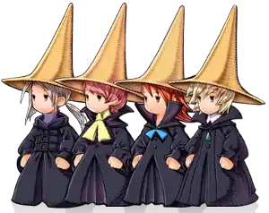 Black Mages excel in attacking enemies with offensive Black Magic. They wield a variety of spells and can attack multiple targets at once. They possess low Attack power and Defense. They can also wield bows and rods.