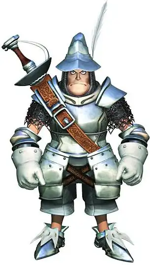 - Knight in Shining Armor: Subverted in that his armor's actually pretty cheap and rusty. Zidane repeatedly teases him about it early on in the game.