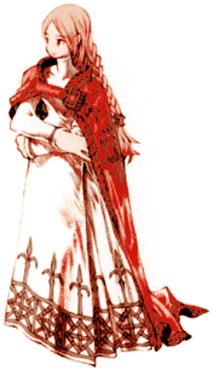 She is Delita's younger sister, and a good friend of Alma. Due to her commoner status, she is ostracized at school. But as she attends such a prestigious school, the Death Corps/Corpse Brigade find her an easy target to take hostage. As part of his Last Stand, Golagros/Gragoroth holds her in front of Fort Zeakden, packed with explosives and ready to blow if his demands are not met.