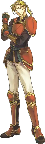 The Crown Prince of Renais, who unlike his twin sister is more into combat and war strategies rather than politics. He wields a spear instead of the standard Fire Emblem hero weapon the sword. When Eirika escapes, Ephraim was already on the way to slow Grado's advances. He eventually joins up with Eirika and helped her in her quest, eventually learning that he will have to take responsibility to be a good king, not just fighting all the time.