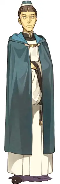 - Color-Coded Patrician: Wears a distinct blue cape/mantle among the other priest/priestesses.