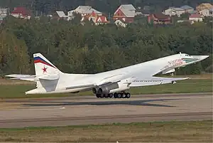 The heaviest combat aircraft ever built (although not the largest- that title goes to the B-36). Called "Belyj lebed" (White Swan) by its pilots because of its manoeuvrability and because it's painted white. The most modern and capable heavy bomber in the Russian inventory, more are currently being built at a slow pace, with a modernised version recently built. It has the world's highest bombing capacity, since the B-1B would need to use external hard points to beat it and that would ruin its "stealth" capabilities. It is also much faster than the Lancer. However, it's had maintenance issues and has never seen combat, unlike the B-1B.