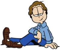 Garfield's owner and the most prominent human in the strip. For most of the strip, he was a simple enough bachelor who cared for Garfield, but eventually grew to be portrayed as a total loser. His personality hit a watershed in the late 2000s when he and Liz finally became the Official Couple.
