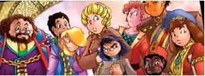 - Bishounen: Maxim, the purple one, was originally designed as an in-joke for Kaja. Lampshaded in the Cinderella side-story, when he's supposed to play an ugly stepsister... well, see for yourself.