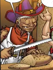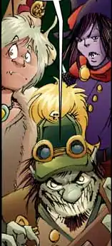 - Badass Normal: He commandeers a rifle from one of the Baron's troops (after somehow ditching Agatha's party), fires from the top of one of caravans and is ready to snipe the Baron (see Shoot the Dog below), delivers an Offhand Backhand to Bangladesh Dupree, and later enters and exits the Jaegergeneral's airship from the window. He also survived being Gil's assistant for at least a year before the comic starts.