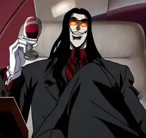 - Alucard from Hellsing, the trope image, is seen enjoying red wine on his throne more than once in there series. It is hinted it may be mixed with blood, or be blood entirely.