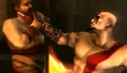 - Neck Lift: After kicking him throught two wooden doors, Kratos does this to him and slowly impales him.