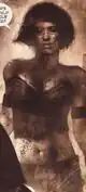 - Good Scars, Evil Scars: Has a long scar across her otherwise pretty face.