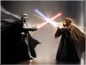 A frequent arrangement for weapons, Eye Beams, Laser Blade swords and energy blasts is bright green or blue for good and red for evil, thanks to the colors of the Jedi and Sith lightsabers in Star Wars. (However, laser weapons on the heroes' ships in Star Wars IV-VI generally fire red blasts while the villainous Imperial craft fire green ones. This was done because U.S. weapons use red tracer rounds. Guess what color the Soviet Union used.)