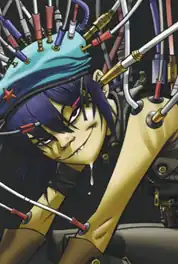 Built as a replacement for the supposedly late Noodle, Cyborg is a meticulous replica of her fourteen-year-old self. She has all the musical skills of the original with none of the personality, and is programmed to obey Murdoc's every command. Cyborg is a firearm aficionado and often acts as a bodygaurd, but also has to spend most of her time charging.
