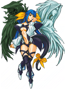 - Yin-Yang Bomb: Subverted: Her two wings have separate purposes. Necro, her dark wing, is used mostly on offense. Undine, on the other hand, uses ice for her attacks, her shield and even carries Dizzy when she faints, like a mother. The two are seen to be arguing with each other and never seen working together.