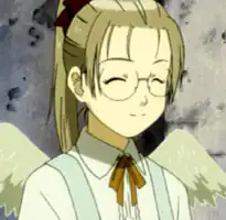 Another one of the older Haibane at Old Home, Hikari works at the oldest baker in town. Very cheerful and bright, she is the one who gives Rakka her halo. She has her mischievious side though, which Rakka finds out after they return the halo mold to the Renmei Communicator.