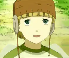 A hyperactive, tomboyish young Haibane, Kanna works as an assistant mechanic in the town's clock shop and clock tower. She is the most outspoken and brash of the Old Home Haibane, and can suffer from a strong stubborn streak when the mood takes her. Has a strong vendetta against the crows that steal Old Home's garbage, though not without good reason.