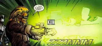 - The Astro City villain HandGun had an arsenal of specialized gauntlets which fire different types of energy beams. When he's killed, his wife is stuck wondering what she's going to do with all that gear...