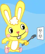 A cute yellow rabbit who has pink cheeks and is always wearing pink bunny slippers. Cuddles is the main character of the series more so than anyone else, and is one of the four "original" Tree Friends. Despite his cute nature, he has been shown to be a bit of a rebellious Tree Friend who enjoys skateboarding, snowball fights, and daredevil acts. He was the first Tree Friend created, appears in most advertisements, and to date holds the highest death count in the series.