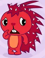 A nervous, cowardly red porcupine whose quills are full of dandruff. Flaky is the subject of a long-standing gender dispute, though most of the creators and fans refer to her as a female. Her official gender description on the website is a question mark. She is very cautious, scared of nearly everything, and is prone to motion sickness. Despite this, she can be very brave if the situation calls for it.