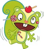 A heroic blue flying squirrel who is always seen with a red mask. Splendid is a superhero with super strength/speed, heat vision, the ability to fly, and more. Despite his helpful nature, he always seems to hurt more than he helps. When not saving the world, he's quite the homemaker who enjoys baking and sewing. He is a comic book legend in-universe, and is an idol to Sniffles and Toothy in particular. His only weakness is a green acorn-shaped rock called Kryptonut, which caused his only confirmed death throughout the whole series. He has an evil twin/evil counterpart, Splendont, who ironically is much better at being a superhero. Splendid stars in Ka-pow! alongside Flippy and Buddhist Monkey.
