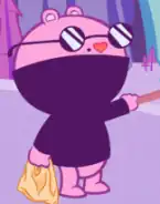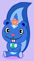 A sweet blue skunk who wears a flower on her head and a pine tree car freshener around her neck. Petunia suffers from Obsessive Compulsive Disorder and is quite a neat freak. She is best friends with Giggles and they like to hang around with each other, have tea parties, play with dolls, etc. She tends to die the messier deaths in the series, such as having her face pressed to a grill or getting pulled through a sink. She is the only character to have not killed another Tree Friend (though she did kill herself in one episode).