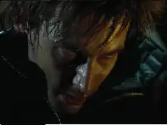Scabior's role was expanded in The Film of the Book, where he has become the leader of the Snatchers, and takes a perverse interest in Hermione. His sarcasm has been downplayed in favor of his creepy qualities, and his confrontation with Bellatrix is extended. Also, he is seen near the beginning as one of the people dragging captives into the Ministry of Magic. His plaid pants have become a minor meme in the fandom.