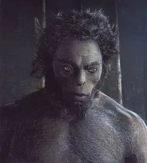 - Adaptational Attractiveness: Inverted. The book describes his human half as that of a handsome blonde man with striking blue eyes, whereas the movie made him look far more bestial and covered with grey hair.