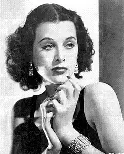 Hedwig Eva Maria Kiesler (1914 - 2000), better known as Hedy Lamarr, was an Austrian actress active in Hollywood from the 1930s to the 1950s. One of her first starring roles was in the dialog-light film Ekstase, which featured a long scene of Lamarr fully nude. While the Hays Code made a repeat performance in America impossible, the reputation as a dark and glamorous Ms. Fanservice did follow her. Subsequent films included an adaptation of John Steinbeck's Tortilla Flat and the Cecil B. DeMille film Samson and Delilah.