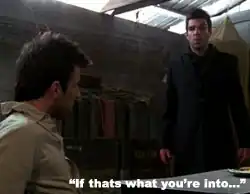 A very Irish pub: The ICF are patting themselves on the back for a robbery well done when Asshole Henchman pulls a gun on them. Peter again channelling Dog calls out "I was right" to which he gets a cookie and two bullets to the chest. Next time shut the hell up and let your captors kill each other. All is not lost however, pulling his best Jesus impression Peter stands up unharmed (And half shirtless) and force pushes Asshole Henchman into the wall, giving him a Darth Vader neck massage at the same time.