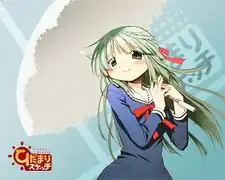 Together with Nori, Nazuna from Room 103 is among a new batch of tenants in the Hidamari Apartments. She's shy and withdrawn, to an even greater degree than Yuno, and often needs encouragement from other girls for daily activities. The fact that she was abandoned by her parents at the Apartments only makes things worse. She's very popular with the boys, but rarely seems to act upon it. She does not attend Yamabuki's art department, despite general interest in the other girls' activities. She has her hair bands as a symbol.