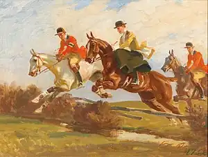 This, believe it or not, is about jumping over things on horses.[1] Deep ravines are a perennial favorite, though other things can be substituted. It probably helps if your horse is cooler than average. Quite often, writers will not see any particular difference between making a jump with a horse and making it with a vehicle, since everyone knows horses are just an old-fashioned type of motorbike anyway.