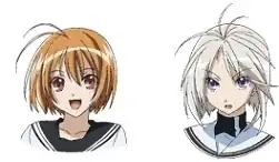 - Schoolgirl Lesbians: Her infatuation with Kämpfer Natsuru. Her other personality has the White Kampfers as a personal harem. Said other personality is also a Psycho Lesbian.