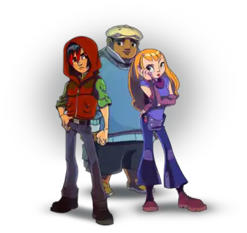 - Animesque: Interestingly, the art director, David Coleman, said, among other things, that the main characters were designed with shapes in mind. Triangles for Ray since he's proactive, squares for Gabe since it's balanced like how he prefers things, and circles for Allie with occasional sharp corners to show her general soft and pacifistic nature, unless you get her really mad. Their main creatures, Bob, Gargle, and Squeaky respectively follow the same patterns.