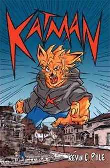 An indie graphic novel by Kevin C Pyle. The story is about Kit, a boy living in a poor neighborhood who takes to caring for stray cats. He befriends Jess, who writes a manga about "katman", Kit's "manga avatar".
