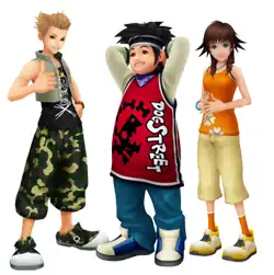 A trio of kids from Twilight Town. They are all close friends and like to hang out, put off homework, and eat sea-salt ice cream together. A virtual Hayner, Pence, and Olette serve as Roxas's friends in DiZ's simulation of Twilight Town during the opening of Kingdom Hearts II to keep Roxas occupied while DiZ manipulates him.