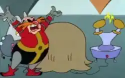- "How dare anyone on Mobius laugh at the great Dr. Robotnik!? No one makes fun of me! No one! Whoever is responsible for this outrage will be my first prisoner! (jumps into the air) BRING ME THE VILE CREATURE WHO DREW THIS CARTOON!!!"
