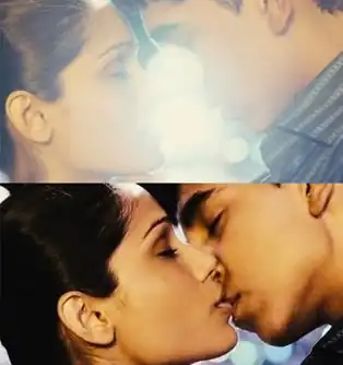 - In True Lies, there's a variation involving Jamie Lee Curtis and Arnold Schwarzneggar. Instead of the sun, their kiss blocks out a nuclear explosion.