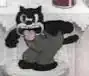 A cat with a speech impediment who usually tries to eat Tweety or Speedy Gonzales, with little success. One of the most versatile of the ensemble, prone to neuroses and usually the star of the comic melodramas. In Robert McKimson's hands, the more slobby Sylvester has a hyper-articulate son named Sylvester Jr., whom Dad tries to impress by chasing what turns out to be a baby kangaroo into another room; when he retreats gibbering at the 'giant mouse!'. Junior is mortified. On a side note, he was technically a creation of Bob Clampett's unit, as evidenced by him appearing in one of Clampett's last theatrical cartoons, "Kitty Kornered". Obviously, Freleng's take on Sylvester is the one everybody remembers.