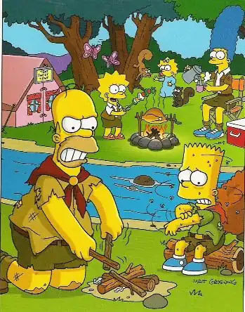 - One of the very first episodes of The Simpsons sent the family camping. Lisa and Marge successfully build their own campfire, while Homer ends up cold, naked and ultimately mistaken for Bigfoot.