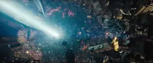 - General Zod's appearance over the screens. His form blurs in and out of the static, creating the appearance of this EldritchAbomination. Indeed the armour of the Kryptonians is extremely intimidating even in plain view.
