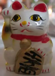 - In one episode of Kekkaishi, a maneki neko can be seen among the objects tossed out a window at Kokuboro when Sen is yelling at Yoshimori.