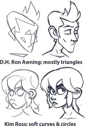 • Dresden Codak: As shown in this page's image, Ron Awning's character design is based on triangles, while Kim Ross's design is based on circles and soft curves.