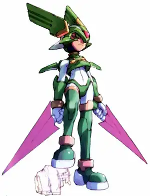 - Famed in Story: He is well-known as a Maverick Hunter even a hundred years after he went missing, and the reactions of who he meets differ depend on which side of the war they're on, with the Resistance and Ciel viewing him as their resurrected savior, and Neo Arcadia viewing him as a Fallen Hero who now works for terrorists.