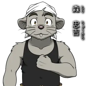 - Furry Ear Dissonance: When Chuukichi's ears are freed from his bandana, not only are shaped like Mickey Mouse ears, but they also have hair behind them, which real rats don't have.