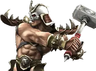- Hammerspace: Literally in his case. Look closely at the sprites for his hammer attack in Mortal Kombat 3 and the move in Mortal Kombat 9, and it appears to materialize out of thin air.